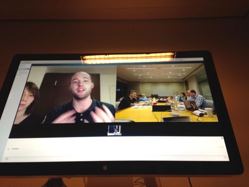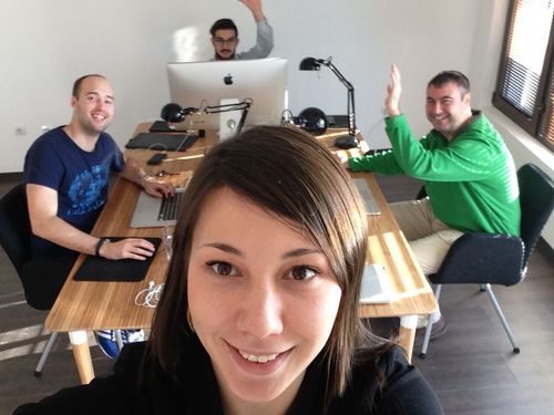 Our first day at our new office in Sofia, Bulgaria. Yana snapping a photo of the 3 of us and Stanimir (right).
